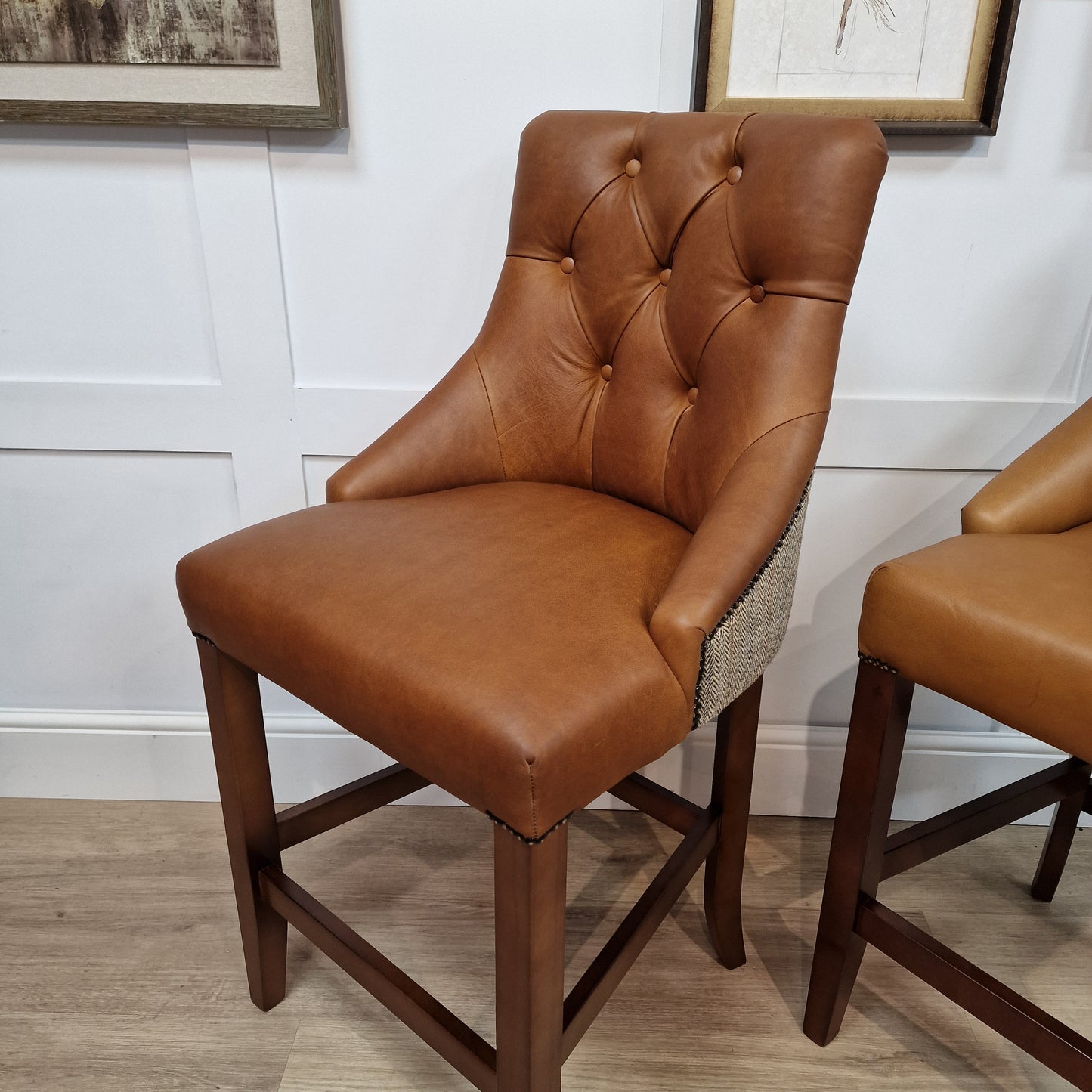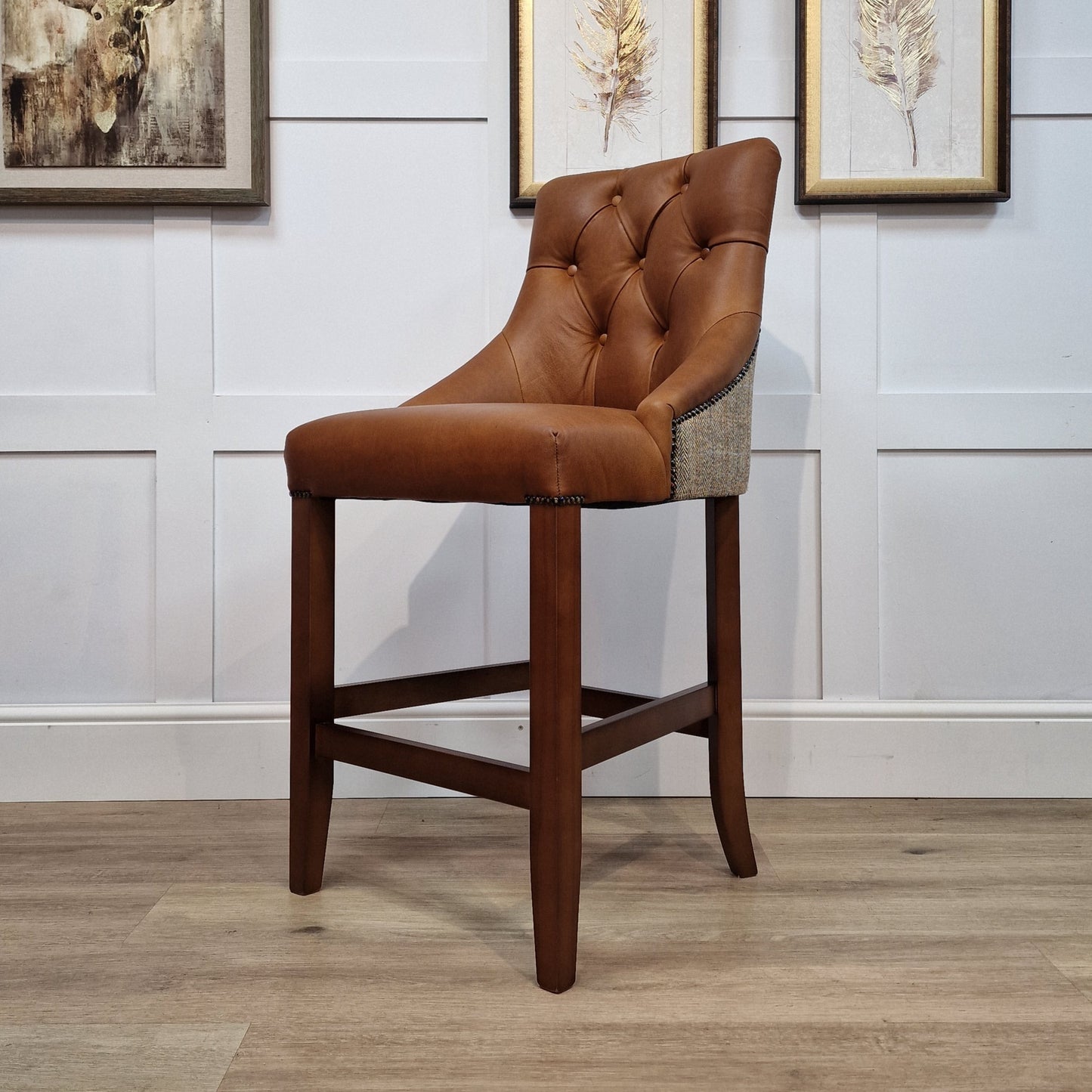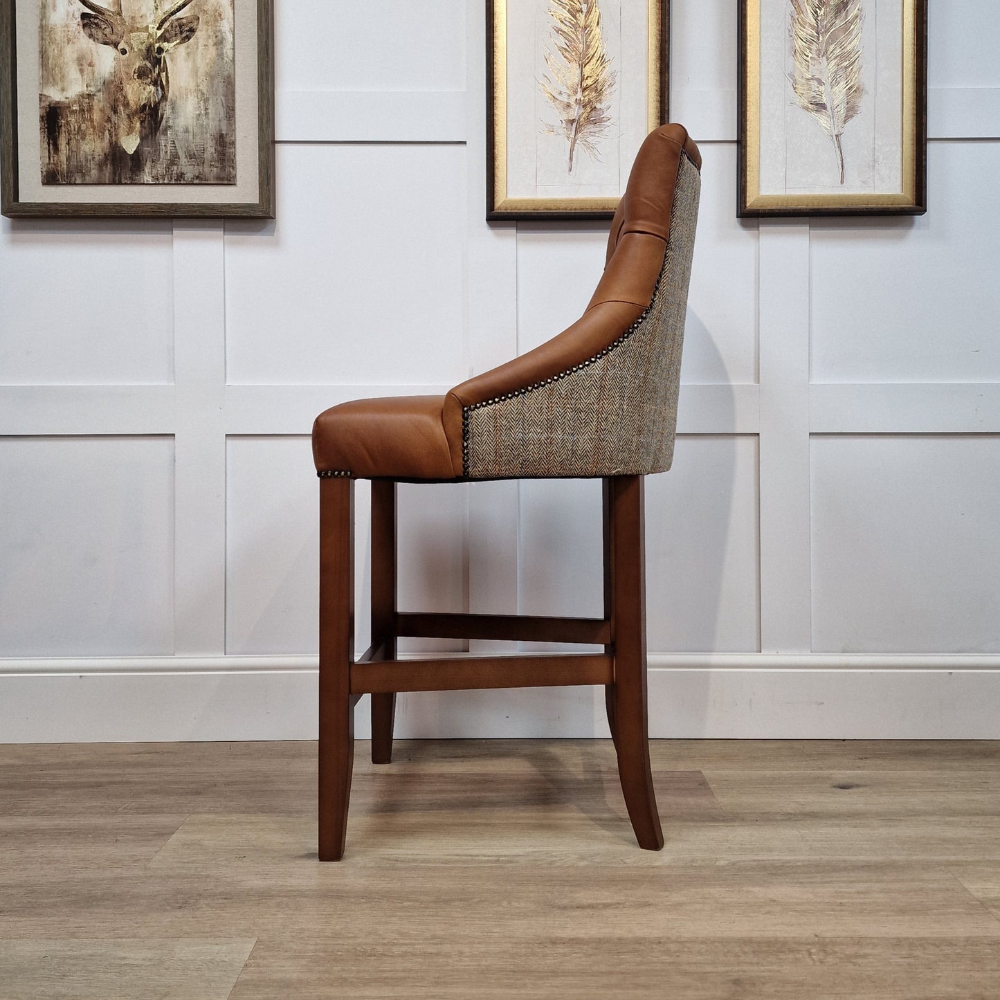 Eddy Brown And Beige Herringbone Harris Tweed and Brandi Leather Barstool