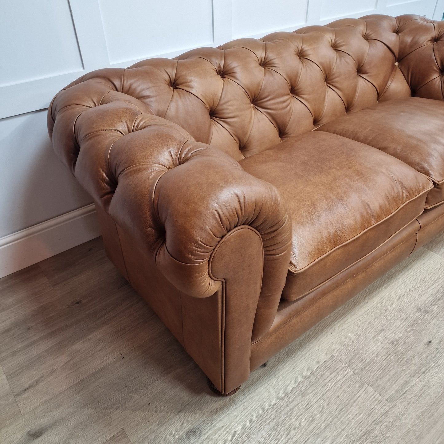 Discover unparalleled British craftsmanship with our full Brandi Leather Chesterfield Sofa Judge, This model is Handcrafted in the UK, and each Judge Chesterfield embodies meticulous attention to detail, guaranteeing exceptional quality with every piece.