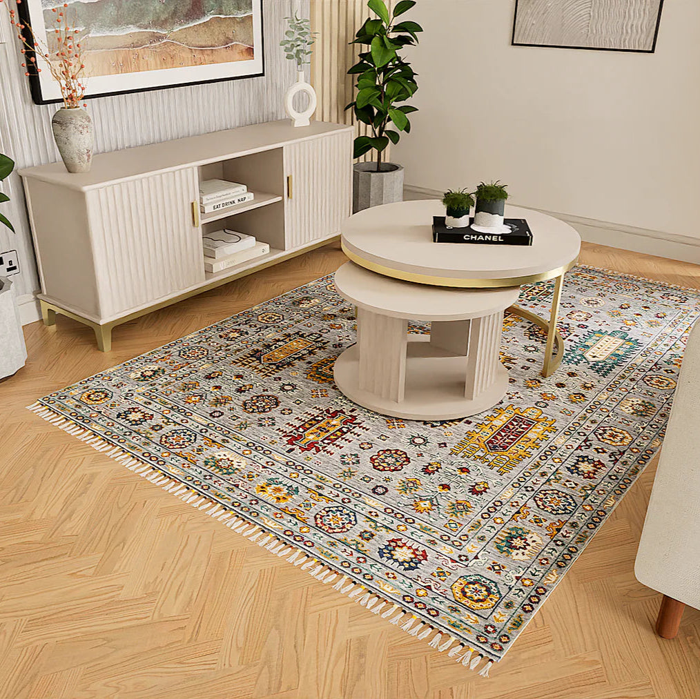 Preserving the beauty and longevity of your rug is straightforward with these essential care instructions: Professional Cleaning: Maintain your rug's brilliance with specialist cleaning services. Vacuuming: Safeguard your rug's integrity by using a suction vacuum only. Avoid rotating brushes, which could potentially damage the delicate fibers. Protect the fringes from the vacuum's reach. Spills and Stains: In case of spills, delicately blot them with a clean, absorbent cloth. Refrain from rubbing or resorting to harsh detergents. Protect: For added protection against movement and colour transfer, we recommend using rug hold underlay.
