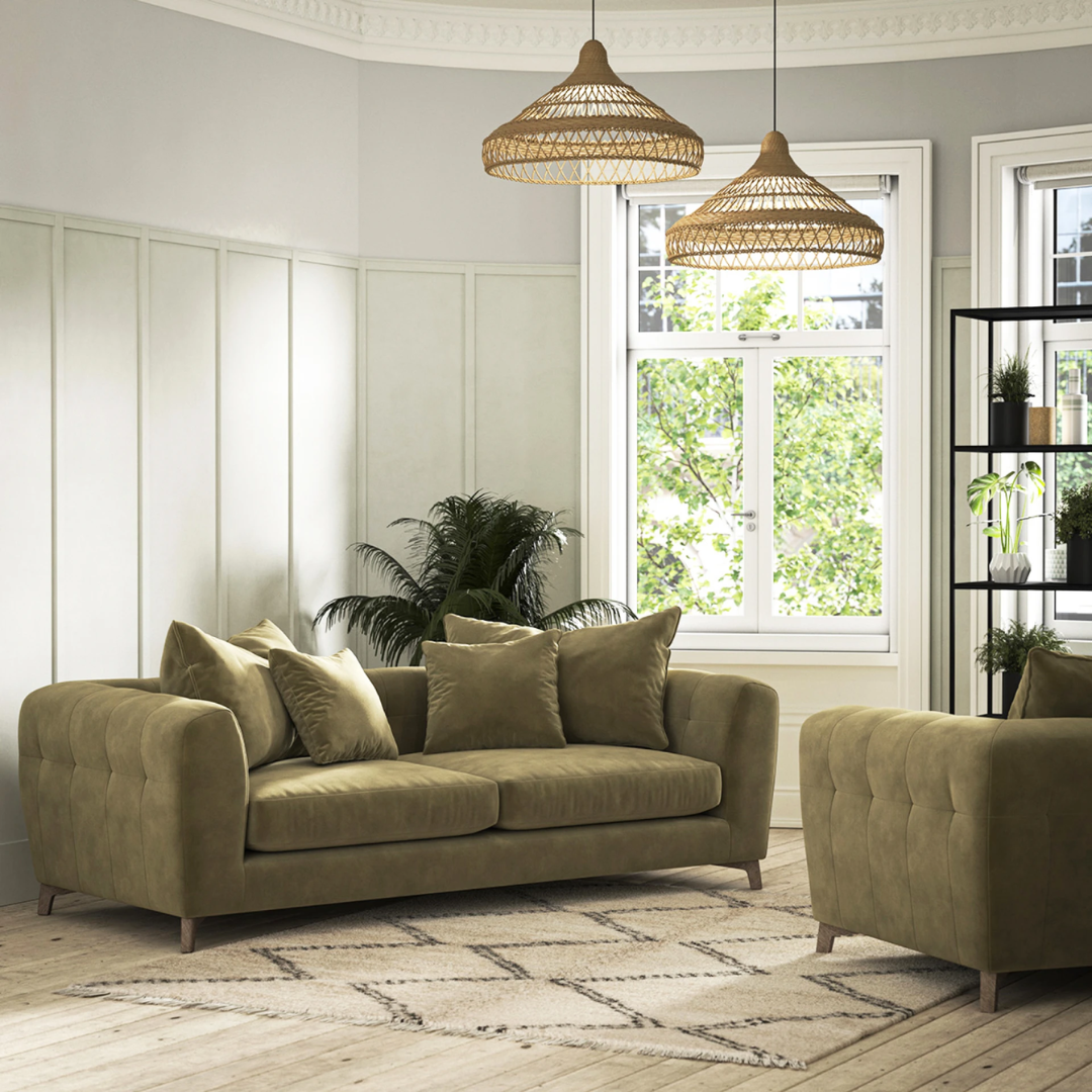 The seat construction features a supportive foam core wrapped in a layer of feather, creating a beautifully soft, relaxed appearance without compromising on structure. This thoughtful combination delivers a luxurious seating experience with excellent recovery, helping the cushions maintain their shape and comfort over time, ideal for everyday use.