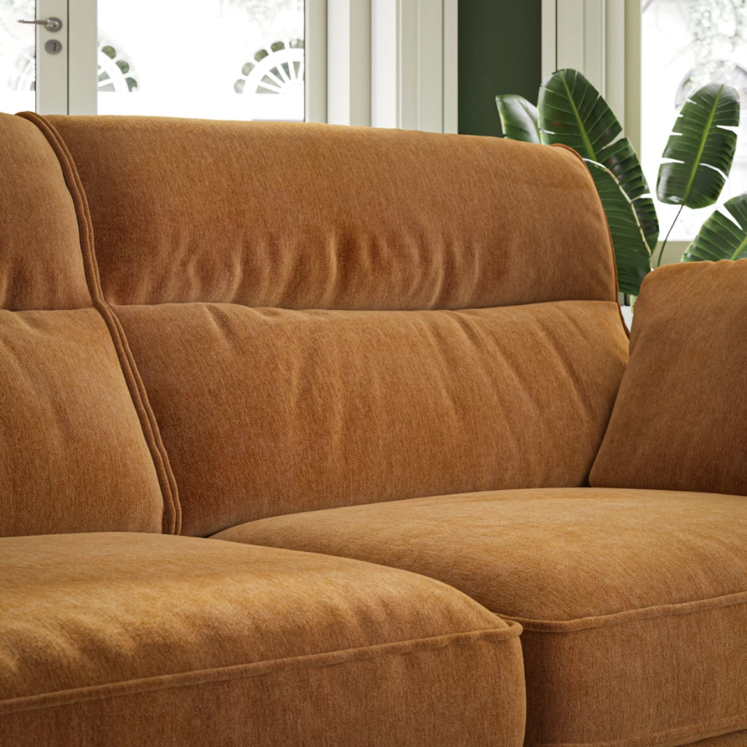 Bring refined comfort and modern sophistication into your home with this stylishly designed sofa collection. The back cushions are generously filled with 100% fibre for a supportive yet comfortable feel, while the arm cushions are filled with 100% duck feather, offering a soft, sink-in experience. All duck feathers are sustainably sourced, combining luxury with environmental responsibility.