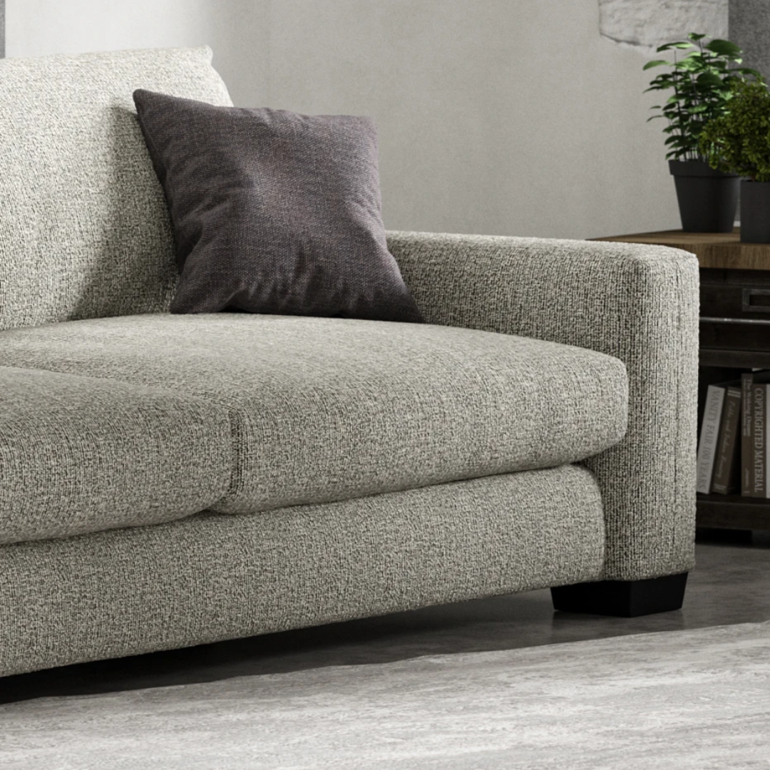 Seat cushions feature a durable foam core, wrapped with a feather topper and base for a balanced mix of structure and plush comfort. Fully reversible, the cushions are designed for longevity and easy maintenance.